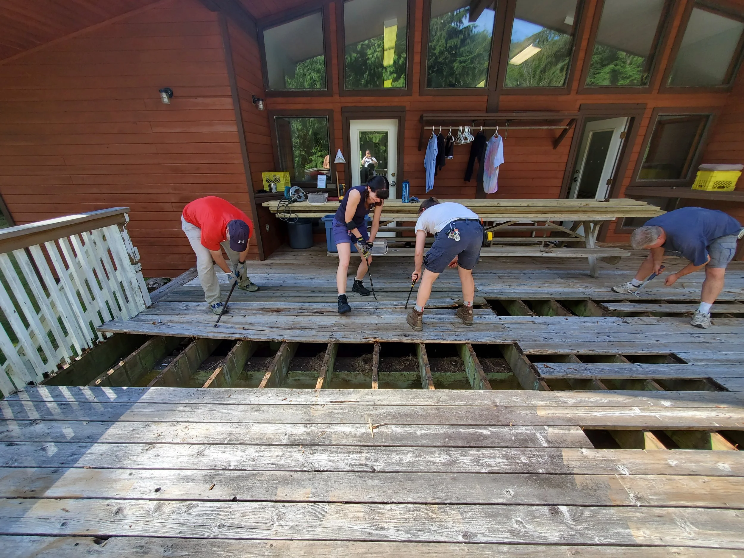 (5) The Ferris' and Martin Riel replacing boards on Somerville's porch.